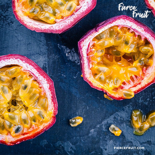 Passion fruit is sweet-tart, citrusy, and floral with notes of melon, pineapple, and kiwi.